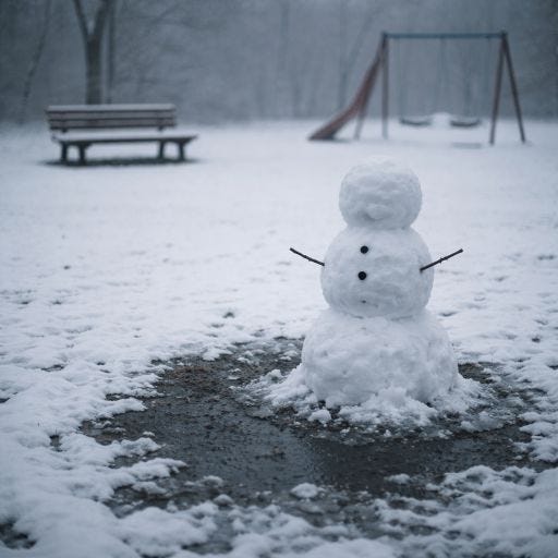 Der Schnee war nass, schwer, klebrig. Kein perfekter Schnee für einen Schneemann. Aber ausreichend.
